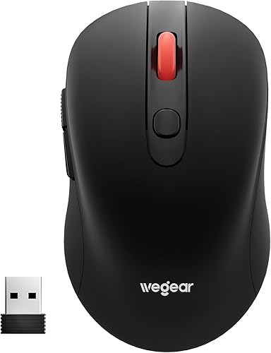 USB Wireless Mouse for Laptop PC Mac, 2.4GHz Cordless Mouse with 6 Buttons, 5-Level Adjustable 4000 DPI, Ergonomic Portable Optical Computer Mice, 24-Month Battery Life -Black