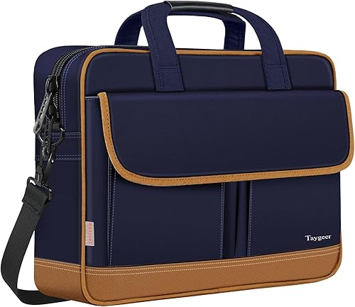 Taygeer Briefcases for Men, Water Resistant Laptop Bag 15.6 Inch for Business, Travel Office Crossbody Carry On Laptop Carrying Case, Messenger Shoulder Bag Fit 15.6 Inch Notebook/Computer, Blue Brown