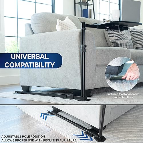 VIVO 20 inch Over Couch Swivel Table, Laptop Desk for Remote Work, Portable Recliner Workstation with Height Adjustable Swing Arm, Black, DESK-ST02C