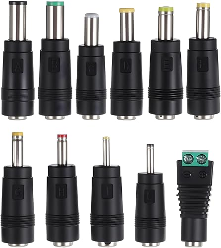 DC Adapter Plug, 11 Pcs Universal 5.5 mm x 2.1 mm DC AC Power Adapter Tips Connector Charger Adapters Kit Power Supply Plug Jack Tips for Led Strip, Laptop
