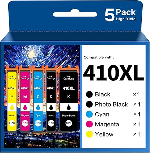 Remanufactured 410XL Ink Cartridges 5 Pack for Epson 410XL 410 XL Ink Cartridges for Expression XP-830 XP-7100 XP-640 XP-530 XP-630 XP-635 Printer (Black, Cyan, Magenta,Yellow, Photo Black)