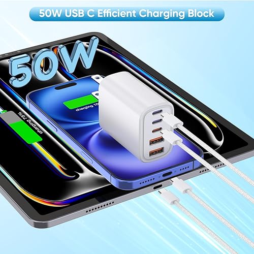 for iPhone 17 16 Charger, 2Pack 50W Fast USB C Charger Block Cubes Multiport USB C Plug,10FT USBC to USBC Cable for iPhone 17/17 Pro/17 Pro Max/17 Air/16Pro Max/16/15 Plus/15 Series, iPad Pro/Air/Mini