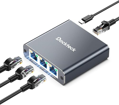 Ethernet Splitter 1 to 3 1000Mbps, Dockteck Internet Cable Splitter 1 in 3 Out High Speed Switch Network Gigabit for LAN RJ45 Port Router Switch Work with Cat5/5e/6/7/8 Cable(Silver Grey)