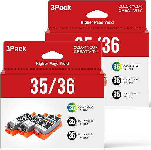PGI-35 CLI-36 TR150 TR160 Ink Cartridge for Canon 35 36 Ink Cartridge Work for Canon TR150 Ink Cartridges for PIXMA IP110 TR160 IP100 TR152 IP 110 IP100 Ink PGI 35 Black CLI 36 Color Printer(3 Pack)
