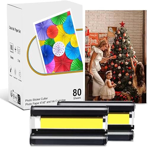 Compatible with Liene Amber M100/M200 4x6" Photo Printer 80 Sheets Photo Paper & 2 Ink Cartridges Refill,Only for DHP512/DHP513 Printer, Waterproof/Antioxidant/No Fading, for Framing & Memories