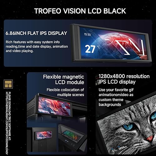 Thermalright Trofeo Vision LCD Black Edition Case Sub-Display Features a 6.86-inch Full-Color LCD Display (1280x480 Resolution) with a Magnetic Panel Screen, Supporting DIY Dynamic/Static Images