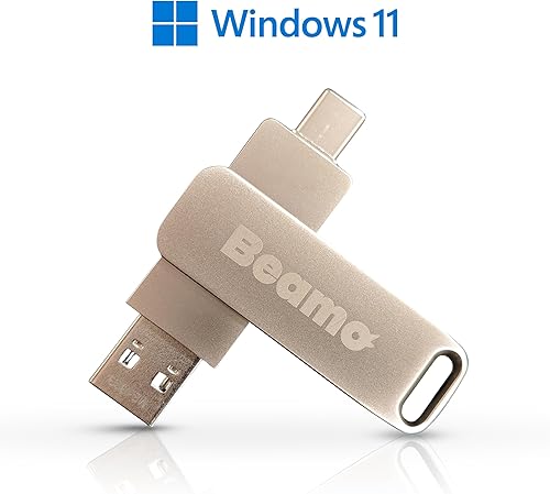 Beamo Windows 11 Bootable USB Flash Drive, 16GB, Installation and Repair Drive for Windows 11, UEFI and Legacy Boot Compatible, No TPM or Secure Boot Requirement, USB-A and USB-C Compatibility