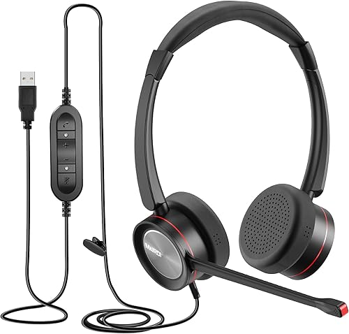 MAIRDI USB Headset with Microphpne, Wired PC Headset with Mic Noise Canceling & Mute for Computer Laptop Teams Zoom Office Work Call Center Business Softphone