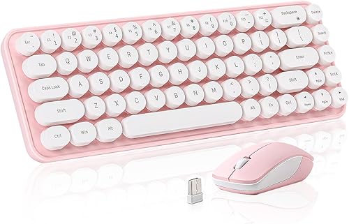 i68 Wireless Keyboard and Mouse Combo, Retro Typewriter Style Keyboard with Round Keycaps, 2.4GHz Connection with Computer PC Desktops Laptop WindowsxP/7/8/10 (Yellow)