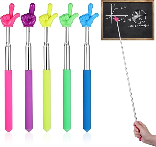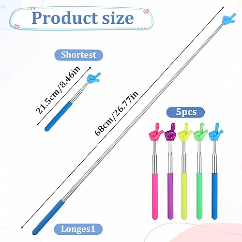 5 Pcs Telescopic Teachers Pointer, Retractable Finger Pointer Sticks Extendable Hand Pointers Stick for Elementary School Kindergarten and Teacher Supplies Interactive Learning (5 Colors)