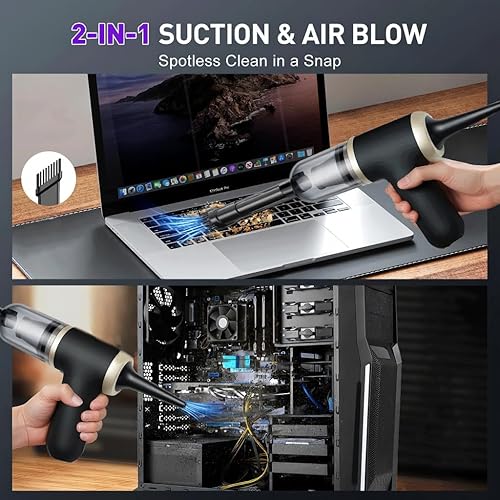 70W Compressed Air Duster 4000mAh USB-C Cordless Air Blower Replaces Canned Air for PC Keyboard Car Outdoor Barbecue with 16000Pa in-car Mini Vacuum Black