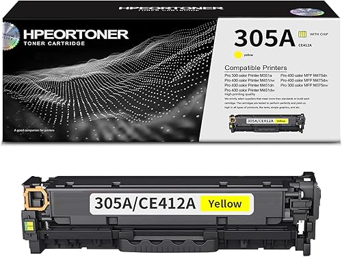 1 Pack 305A / CE412A Yellow Toner Cartridge, High Yield 2,800 Pages, Replacement for HP 305A / CE412A Color Pro 300 Color M351a MFP M375nw Pro 400 M451nw M451dn M451dw Printer