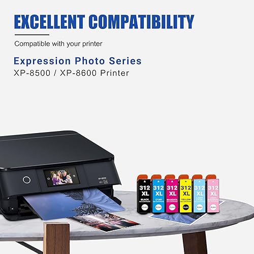 312XL High Yield Ink Cartridge Set 6/Packs - Replacement for 312 312XL Ink Cartridge with Expression Photo XP-8500 XP-8600 Printer Ink