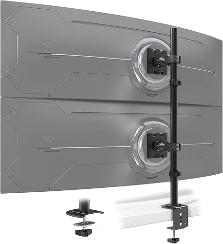 Heavy-Duty Dual Vertical Monitor Arm with 32.2" Extended Pole - Supports Two 49" Ultrawide Screens, Swivel/Tilt/Rotation, 44 lbs per Screen (Black)