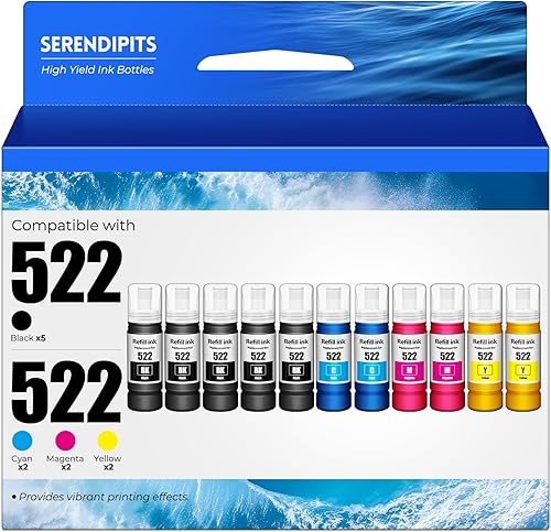 522 Ink Refill Bottles ET-4800 ET-2800 ET-2803 ET-2400 Replacement for 522 Ink Refill Bottles 6 Pack Fit for 522 Ink for ET 2800 ET-2720 ET-2840 ET4800 ET2400 ET-4700 ET-4810 ET2800 2803 2800 Printer