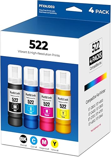 522 Ink Refill Bottles Eco Tank ET-2800 ET-2400 ET-4800 Ink Refill Compatible for E-pson 522 Ink Refill Bottles 4-Pack for ET-2800 ET-2400 ET-4800 ET-2400 ET-2803 ET-2720 ET-4700 ET-4810 2840 Printer