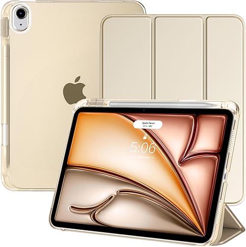 TiMOVO Case for iPad Air 11 Inch M3 2025/M2 2024, iPad Air 5th Generation 2022/4th Gen 2020 10.9 Inch with Pencil Holder, Stand Cover with Translucent Back, Support Auto Wake/Sleep, Flowers Pink
