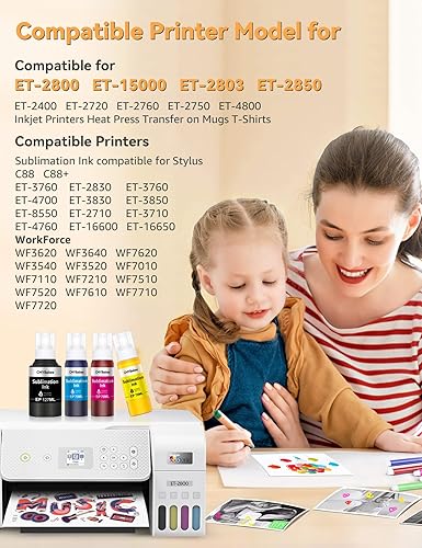 CMYBabee Sublimation Ink Refill Bottles Compatible for Epson Printers ET2800 ET15000 ET8550 ET2400 ET4800 ET2850 ET2803 ET3830 ET3850 ET4850 Heat Press Transfer on Mugs T-Shirts(4 Pack)