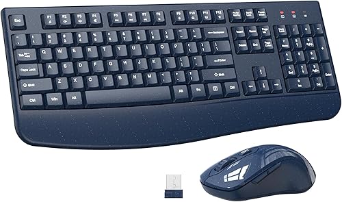 Wireless Keyboard and Mouse Combo, 2.4G Full Size Wave Keys Ergonomic Keyboard with Wrist Rest and 3-Level DPI Adjustable Wireless Ergonomic Mouse for Windows, Mac OS Desktop/Laptop/PC(Pink)