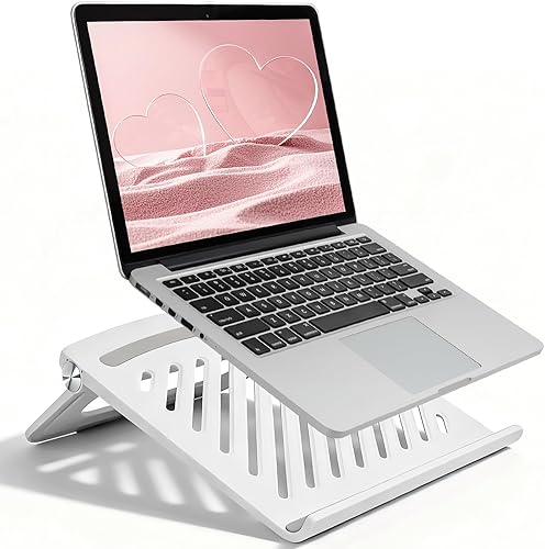 Cute Pink Laptop Stand for Desk – Adjustable Foldable & Portable Laptop Riser with Silicone Anti-Slip Pads, Ventilated & Sturdy Computer Stand for MacBook, Notebook, Office, Home, or Travel