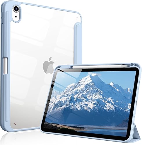 Case for iPad Air 11 Inch M3/M2 2025/2024, iPad Air 5th/4th Generation 10.9 Inch 2022/2020 with Pencil Holder, Auto Sleep/Wake, Shockproof Cover with Clear Back Shell (Light Blue)