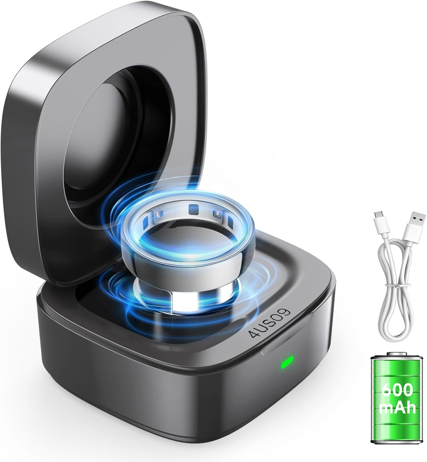 Wireless Charger Case Only Compatible with Oura Ring Gen4 - Size 8 - Upgraded Safety Mechanism Charger Grey Small Portable Travel Charging Box for Smart Ring