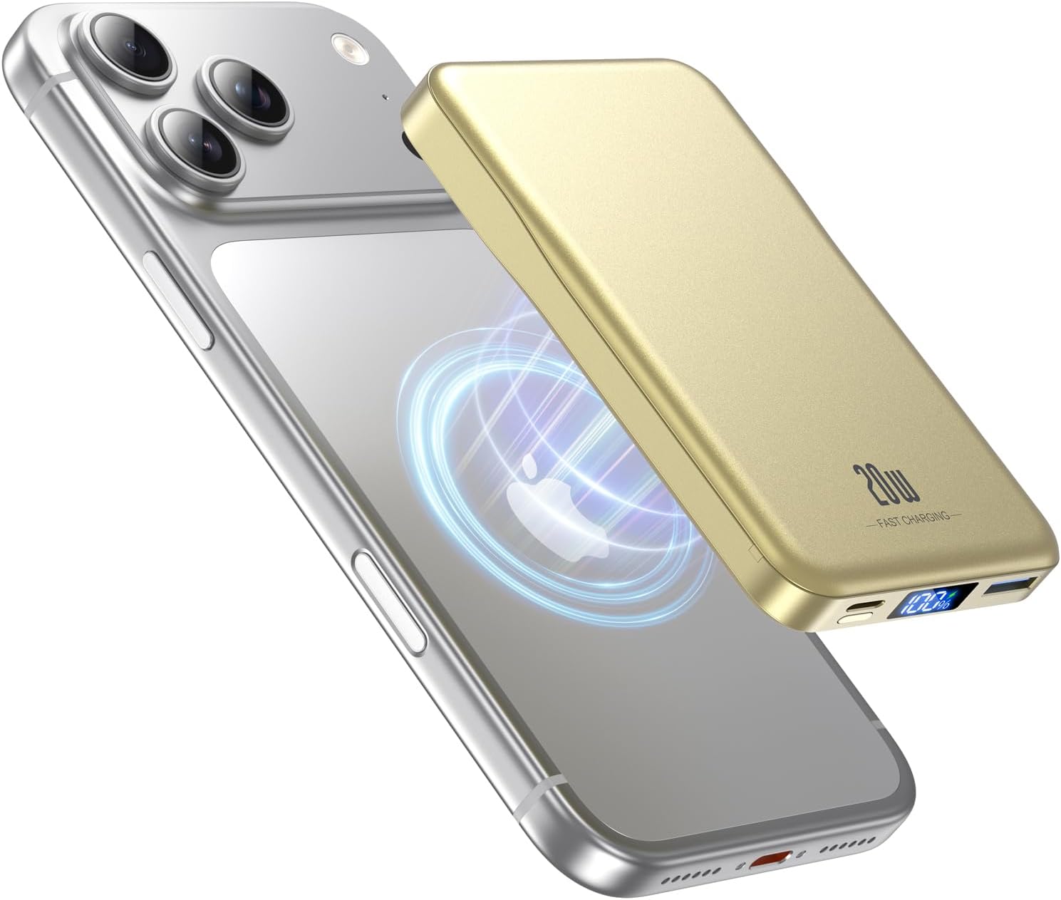 Magnetic Portable Charger, 10000mAh Power Bank, PD 20W Fast Charging for Magsafe Battery Pack, Travel Essential Wireless Charger Compatible with iPhone 17/16/15/14/13 Pro/Max/Air/Plus Series, Samsung