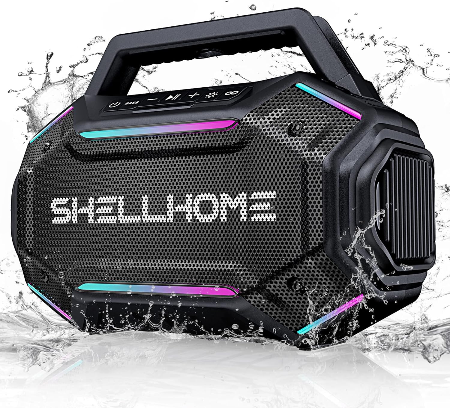 Bluetooth 6.0 Speakers Outdoor, 80W(Peak) Loud Speaker with Bass, 30H Playtime, IPX6 Waterproof, RGB Lights, BassUp 2.0, TWS, Portable Large Jobsite Speakers for Workshop, Garage Party, Pool