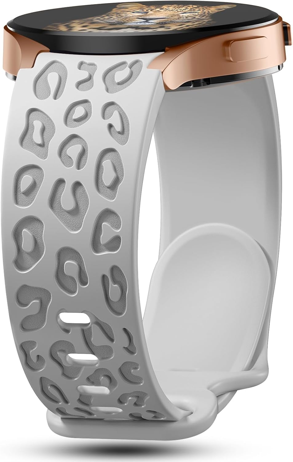 No Gap Leopard Engraved Bands Compatible for Samsung Galaxy Watch 6/5/4 Band 40mm 44mm, Watch 6 47mm 43mm,5 Pro 45mm, Watch 4 Classic 42mm 46mm, 20mm Soft Silicone Replacement Strap for Women
