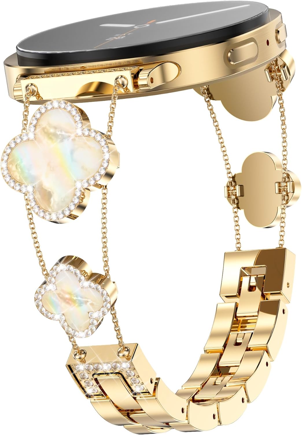 YMHML Bling Diamond Clover Band Compatible for Samsung Galaxy Watch 8 40mm 44mm / 8 Classic 46mm 2025 Women, Cute Easy Adjustable Bracelet, Sparkle Dressy Jewelry Metal Wristband Lucky Clover Strap