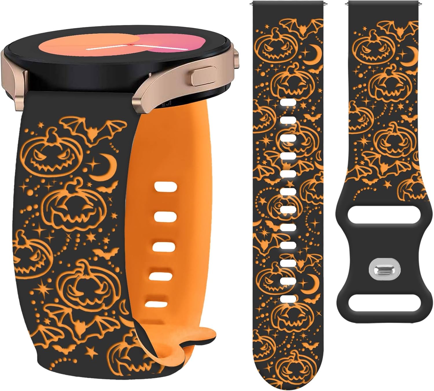 Watbro 20mm Halloween Pumpkin Engraved Band Compatible with Samsung Galaxy Watch 7 6 5 4 FE 40 44mm Band for Women Men,Thanksgiving Strap for Active 2/Galaxy Watch 3 41mm/Garmin Vivoactive 5/Venu