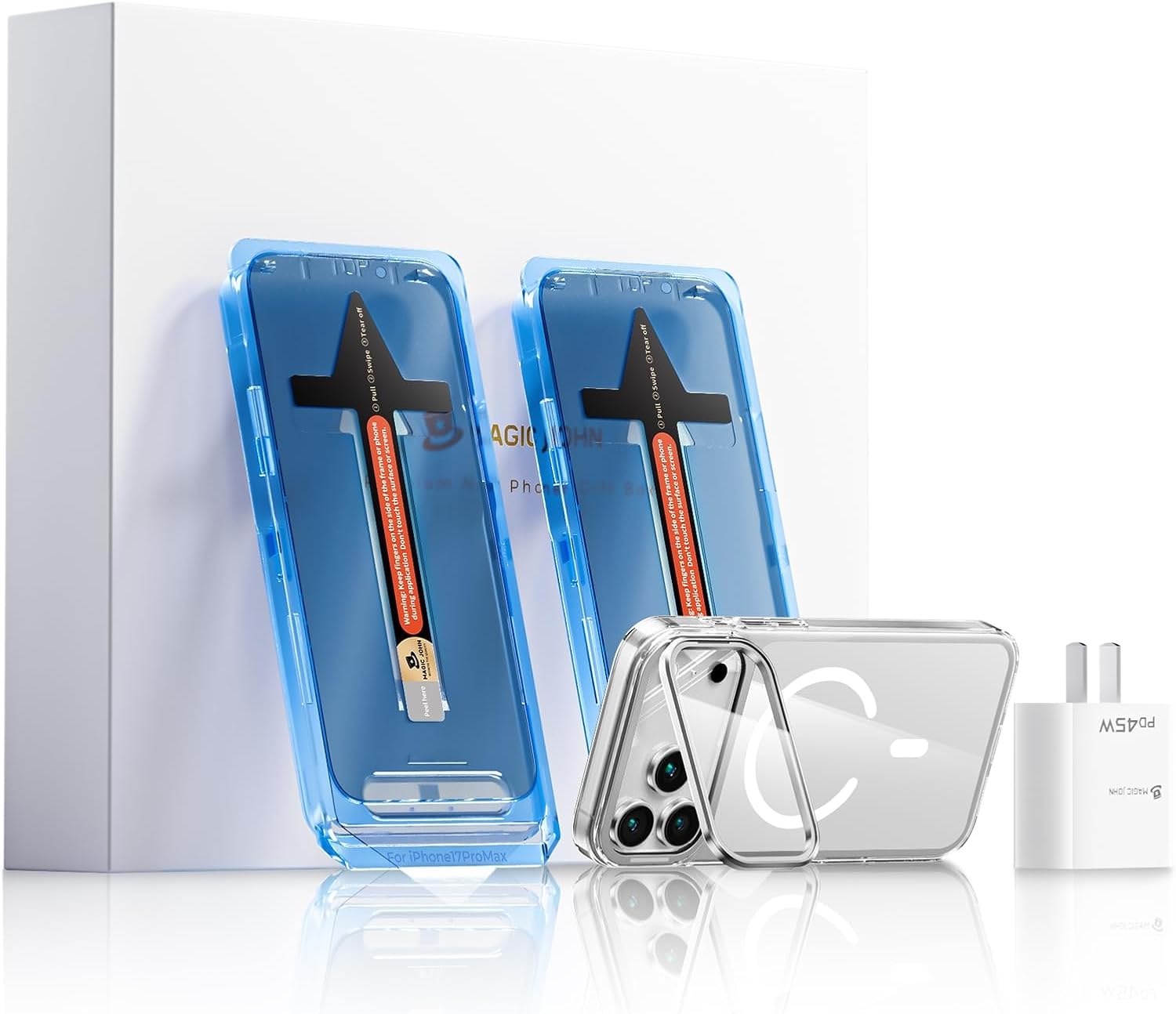 MAGIC JOHN for iPhone 17 Pro Max Phone Accessory Bundle [iPhone Privacy Screen Protector] [Lens-Stand Case] [45W PD Fast Charger] 3-Piece Set, Compatible with iPhone 17 Pro Max White