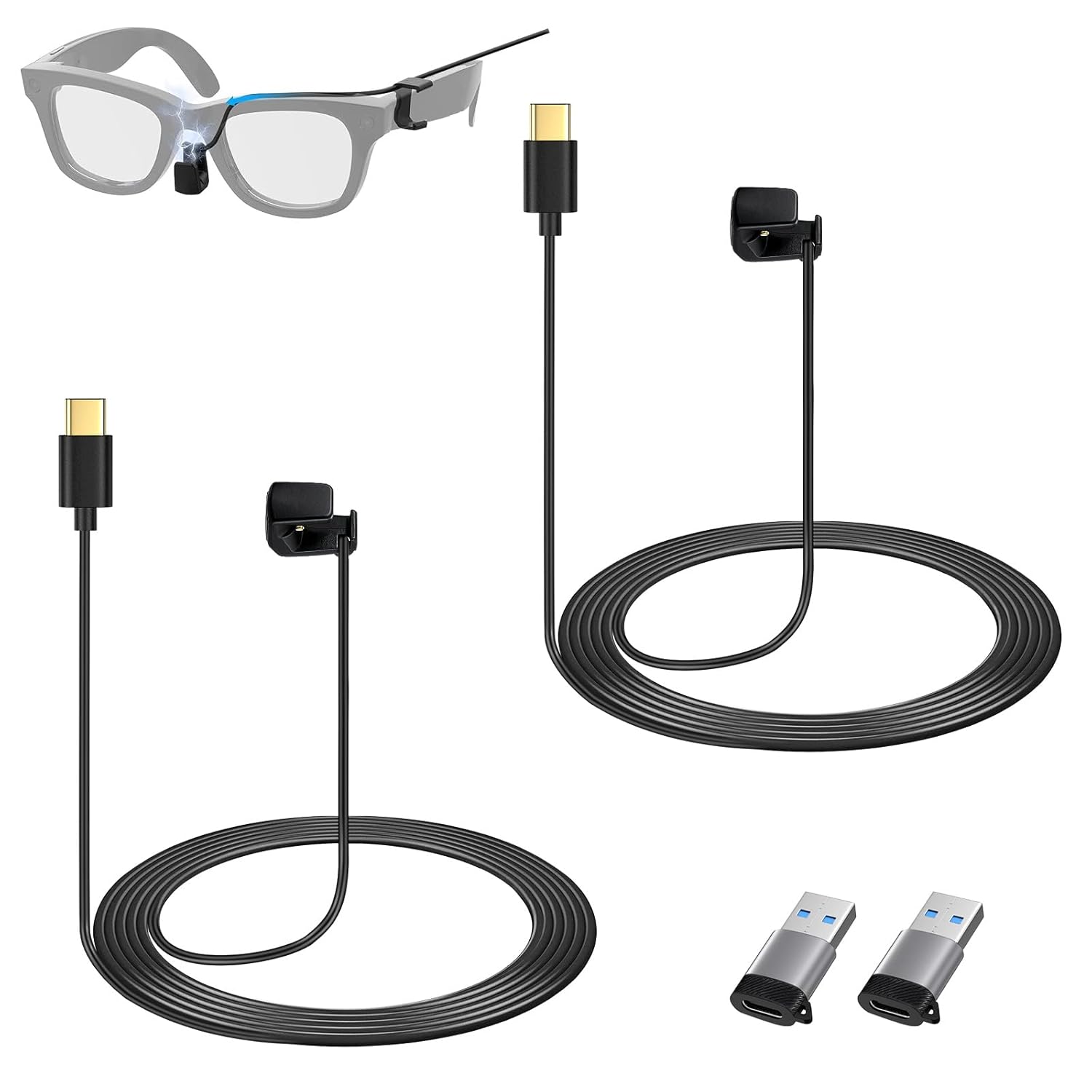 weishan 2-Pack USB C Charging Cable for Ray-Ban Meta Wayfarer Smart Glasses, Magnetic Cord Compatible with RayBan Skyler/Headliner Sunglasses, with USB-C to USB Adapter, 4ft