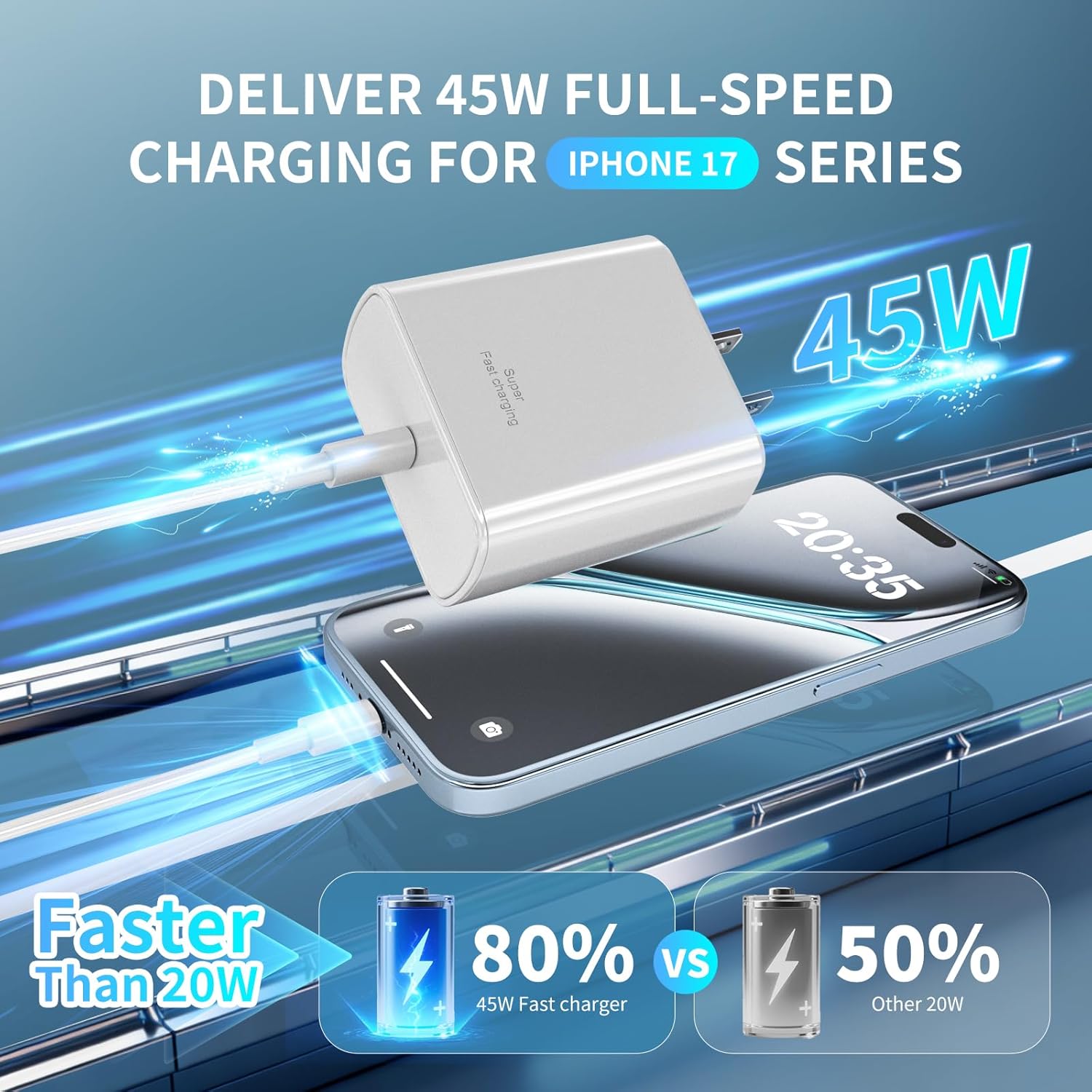 USB C Charger for iPhone 17 Pro Max,2Pack 45W USB-C Super Fast Charging Wall Charger Block Power Adapter with 6FT Type C USBC to C Cable for iPhone 17/17 Pro/17 Pro Max/Air/16 Plus/16/15,Galaxy