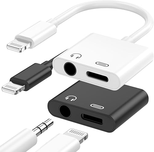 [Apple MFi Certified] iPhone Headphones Splitter Adapter,2 in 1 Lightning to 3.5mm Headphone Aux Audio+Charge Jack Adapter Dongle Splitter Compatible with iPhone14/13/12/11/SE/XS/XR/X/8/7(Black+White)
