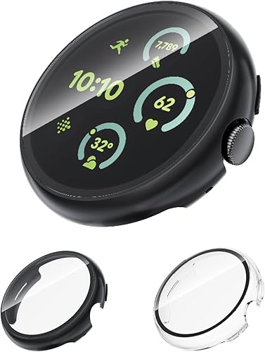 2 Pack Case with Tempered Glass for Google Pixel Watch 4 Screen Protector 45mm Women Men,Hard PC Overall Protection Scratch-Resistant Cover for Google Pixel Watch 4 Case 45 mm Accessories