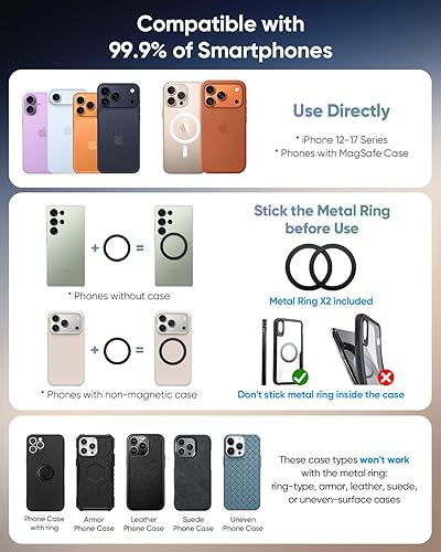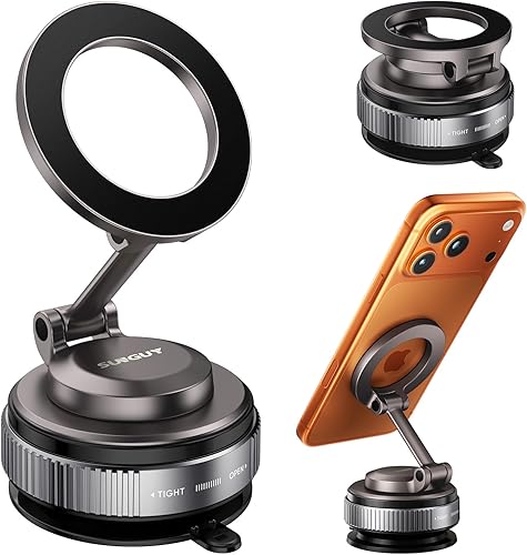 SUNGUY Upgraded Gel Vacuum Magnetic Phone Holder, 360° rotatable Cell Phone Holder for Magsafe 5KG Ultra Suction Cup & 30N Strongest Magnetic Holders for i-Phone12-17 Series and Android