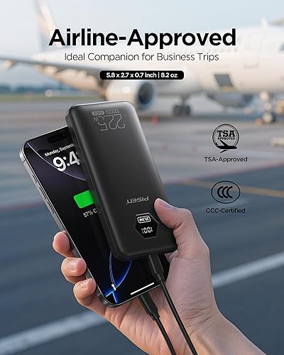 PISEN 10000mAh 3C Power Bank - 10000mAh 22.5W CCC Certified Power Bank, Travel Battery Pack 3C Portable Charger, PD QC LED Display Travel Portable Charger 2USB-A, 1USB-C for iPhone, Samsung and More