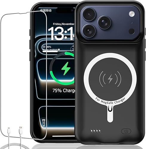 Battery Case for iPhone 17 Pro Max, 12000mAh Capacity Portable Charger Case Rechargeable Smart Battery Pack Compatible with iPhone 17 Pro Max 6.9 inch Charging Cover Support Wireless Charging (Black)