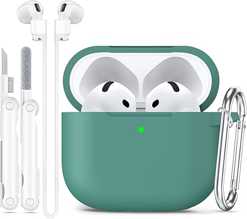 Compatible with AirPods 4 Case 2024 with Cleaner Kit,Silicone Protective Case for Apple AirPods 4th Generation with Anti-Lost Rope for Women Men,AirPod Case Accessories with Keychain,Sky Blue