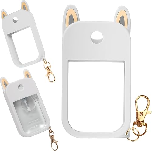 3 Pack Cute Ear Silicone Case Compatible with Touchland Hand Sanitizer Spray (Fit for 1 FL.OZ), Protective Case with Keychain, Hand Sanitizer Holder(Black,White, Purple)