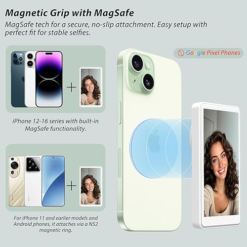 Phone Selfie Monitor Screen for Media Content Creators, Wireless Back Camera Monitor Screen, Compatible for iPhone & Android, Rear Camera for Selfie Vlog Live Stream TikTok, Bluetooth Remote