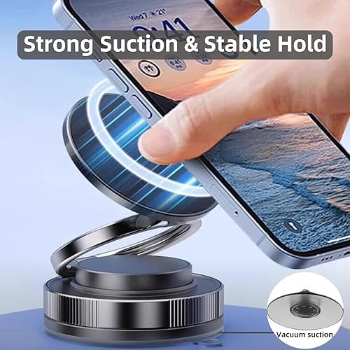 Vacuum Magnetic Suction Phone Holder Pocket Portable Car Mount Foldable & Retractable Suction Cup Cradle Dock Hands-Free Cell Phone Holders for Car/Gym/Mirror Mount for iPhone & Android