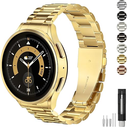 Stainless Steel Band Compatible with Samsung Galaxy Watch 7 6 5 4 FE Pro Classic Band 40mm 44mm 43mm 47mm 45mm 42mm 46mm, 20mm Metal Elegant Casual No Gap Strap for Women Men