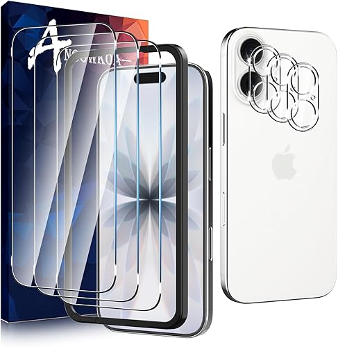 3 Pack Designed for iPhone 17 6.3" Screen Protector + [3 Pack] Camera Lens Tempered Glass Protector.9H Hardness.Support Fingerprint Unlock.Bubble-Free.Easy Installation