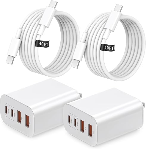 iPhone 17 16 15 Charger, 40W USB C Charger Block with 10FT Type C Fast Charging Cable 4-Port Wall Plug Power Brick Type C Chargers Block for iPhone 17/17 Pro/17 Pro Max/Air/16/15/iPad Pro, 2 Pack