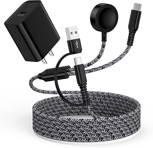 Galaxy Watch Fast Charger for Samsung Galaxy Watch 8/8 Classic/Ultra/7/FE/6/6 Classic/5 Pro/5/4/4 Classic/3/Active2/1 Charger Cable Dock, 2 in 1 25W USB C Fast Charger for Samsung S25/S24//S23/S22/A16