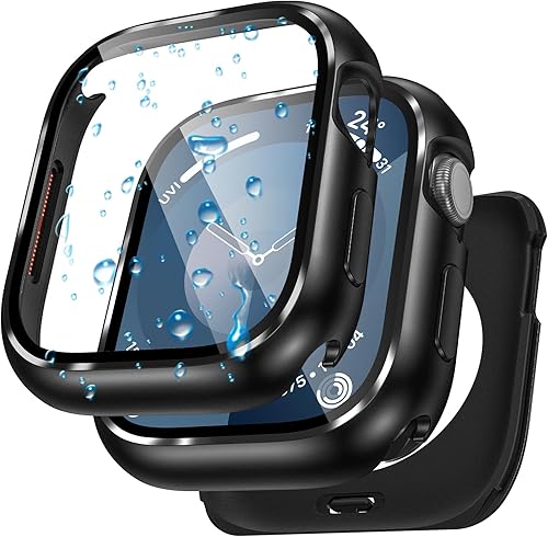 Goton AntiCrack Metal Case for Apple Watch Series 9/8/7 45mm Screen Protector, HD Tempered Glass, Daily Water-Resistant Alloy Bumper with Ceramic-Style Back Cover for iWatch 45 mm