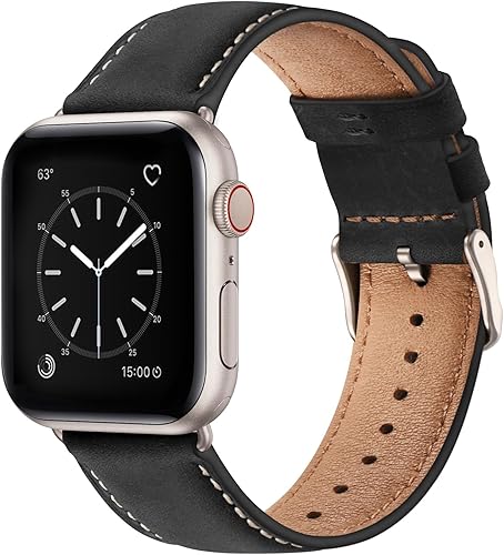 SUNFWR Leather Bands Compatible with Apple Watch Band 41mm 40mm 38mm 42mm(series 11 10) for Men Women, Top Grain Genuine Leather Replacement Strap for iWatch SE 3 2 1, Series 11 10 9 8 7 6 5 4 3 2 1