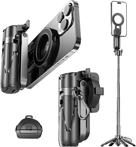 Magnetic Phone Tripod with Remote Control, Portable Magnetic Selfie Stick Tripod for Photography, Videography and Live Streaming, Cell Phone Stand for iPhone Smartphone